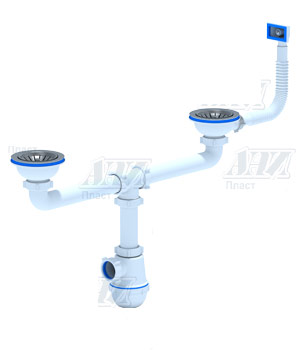 Сифон 2-ой Ани 3 1/2″*40 смещ. с отводом круг. и прямоуг. переливом с г/тр. 40х40/50