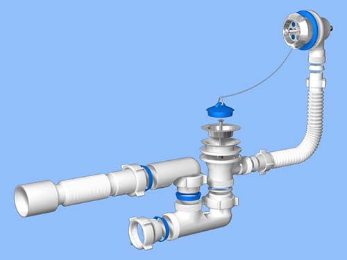 Сифон Ани 1-1/2″ д/ванны с выпуском и переливом, регулируемый