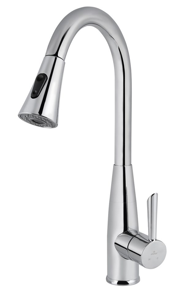 Смеситель KAISER Claro для кухни с вытяжной лейкой Ø35 /Латунь /Серебро