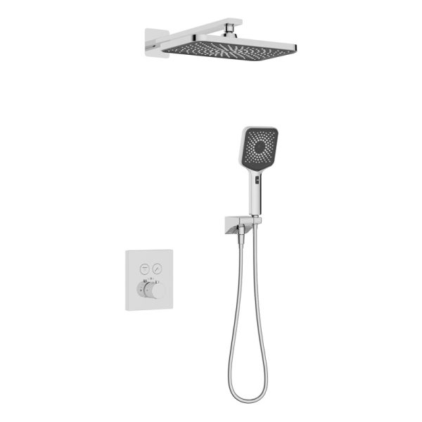Душевая система KAISER Cube с термостатом (1-jet/стац. лейка 260х188) /Латунь /Белый матовый