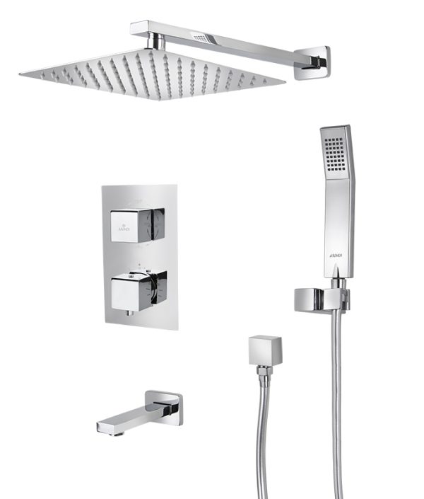 Душевая система KAISER Sonat с изливом, термостат, скрытого монтажа (стац. лейка 250х250) /Хром