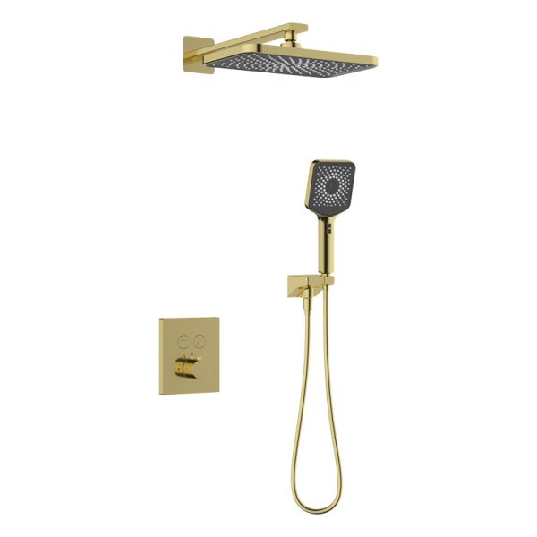 Душевая система KAISER Cube с термостатом (1-jet/стац. лейка 260х188) /Латунь /Шлифованное золото