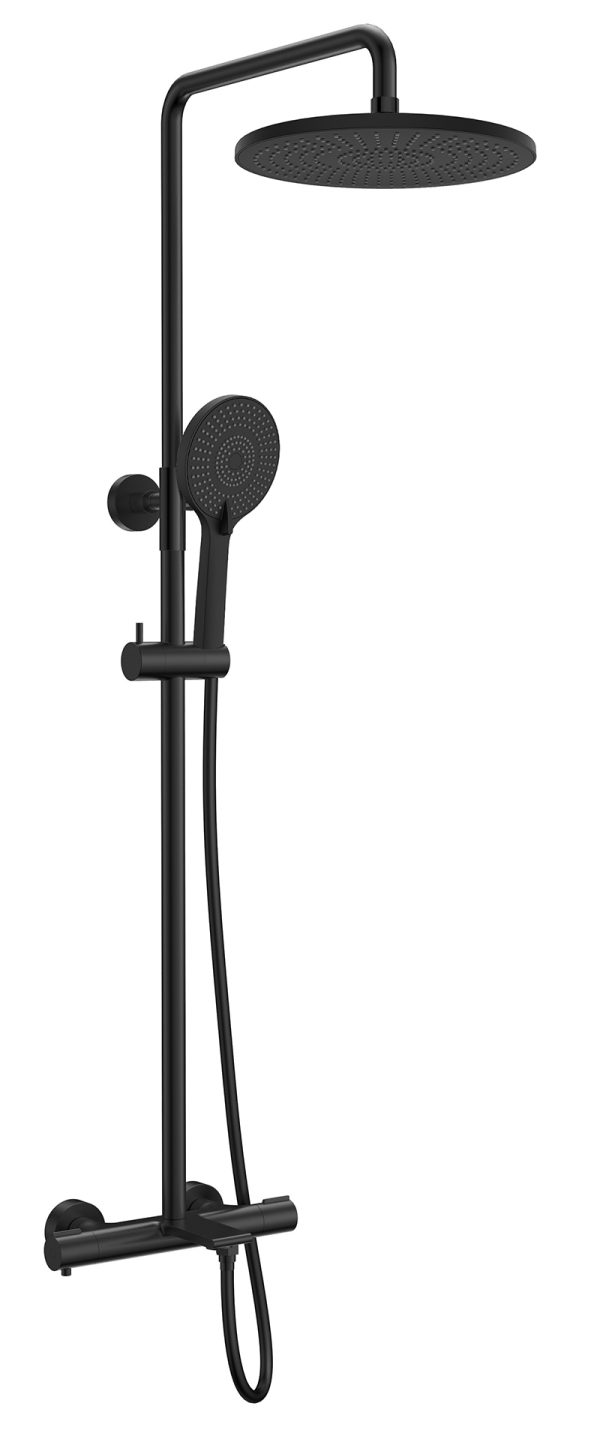 Душевая система KAISER Nove с термостатом, стац. лейка Ø230mm, черный матовый
