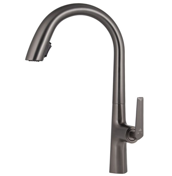 Смеситель KAISER Strike кухня Ø35 с выдвижным изливом, воронёная сталь