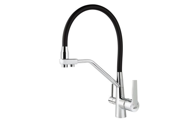 Смеситель VIKO кухня боковой под фильтр Ø35 (латунь) с черным гибким изливом, корпус: хром