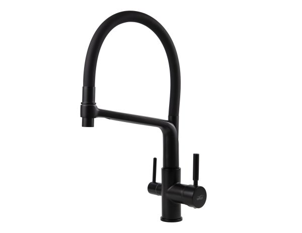 Смеситель VIKO кухня боковой под фильтр Ø35 с черным гибким изливом, латунь, корпус: черный матовый (латунь)