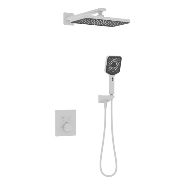 Душевая система KAISER Sano с термостатом, скрытого монтажа, поворот. держатель (3-jet, стац. лейка 320×200х16) /Белый матовый