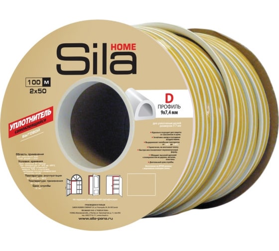 Уплотнитель Sila Home D100 9х7,4мм белый Польша