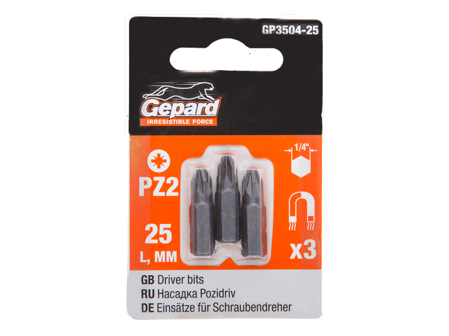 Бита Pz 2*25 мм магнит GEPARD 3 шт
