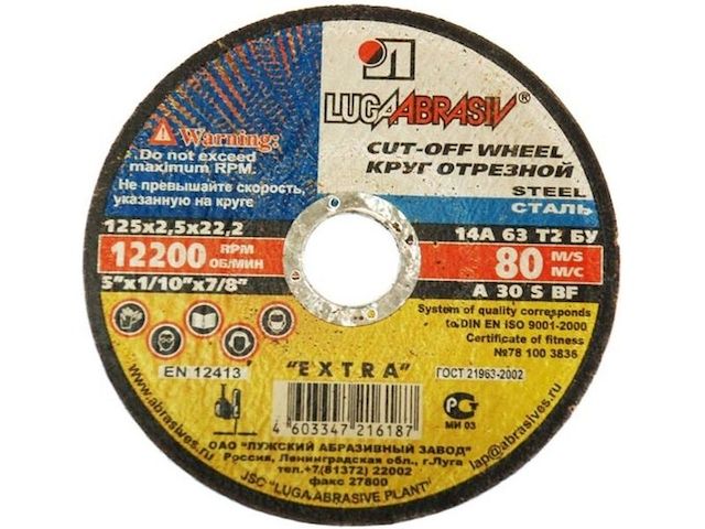 ЛУГА Диск отрезной А24, предназначен для резки деталей и конструкций из различных марок сталей. Используется для работы с угловой шлифовальной машиной, болгаркой.