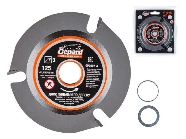 Диск пильный по дереву 125*22.2/20/16 мм*3 зуб для УШМ GEPARD GP0907-3