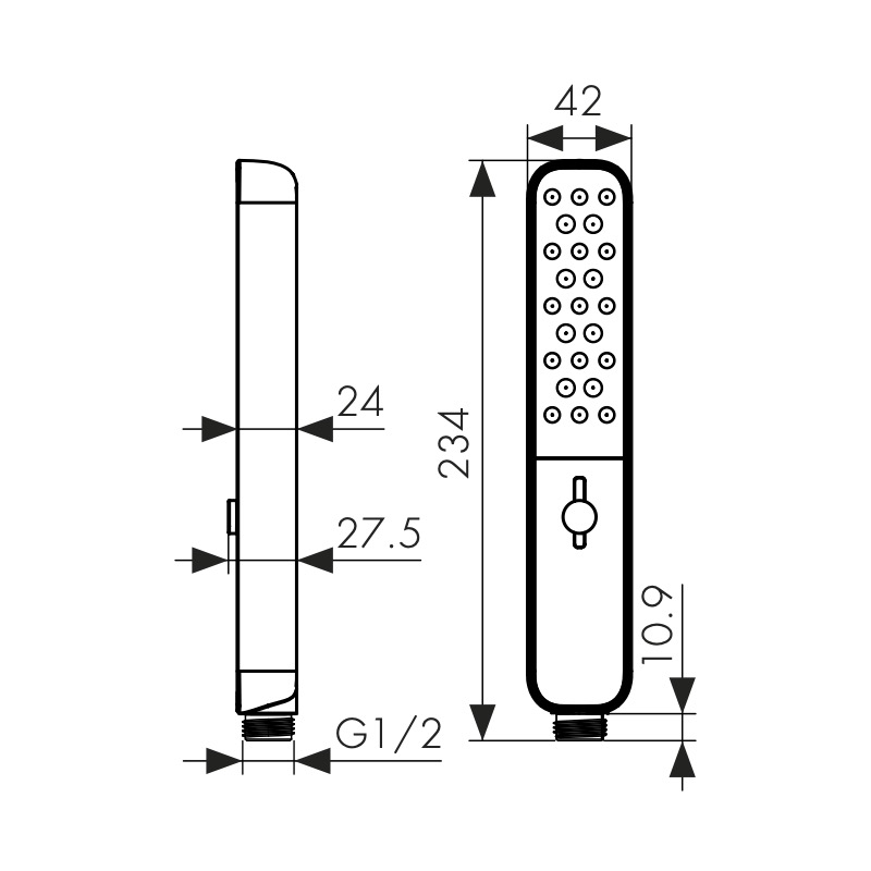 Душевая лейка KAISER 4-х режимная, 223х42х24мм, в коробке /Пластик//Воронёная сталь
