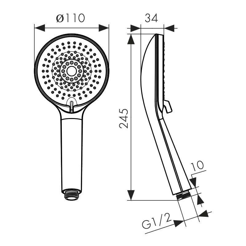 Душевая лейка KAISER массажная 4-х режимная, Ø110х245мм, в коробке /Пластик/Хром
