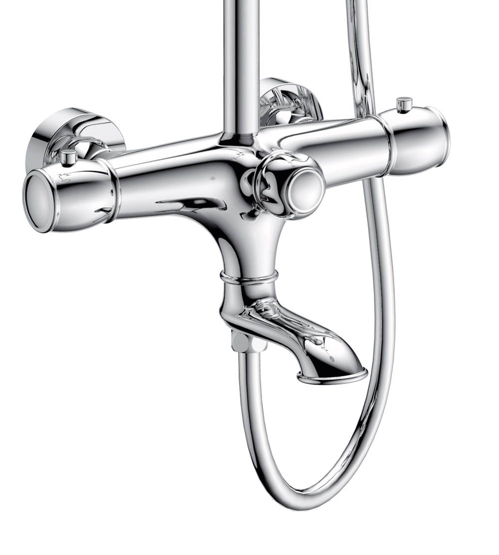 смеситель; релинг; верхний душ; душевая лейка; держатель лейки; шланг; крепления |
