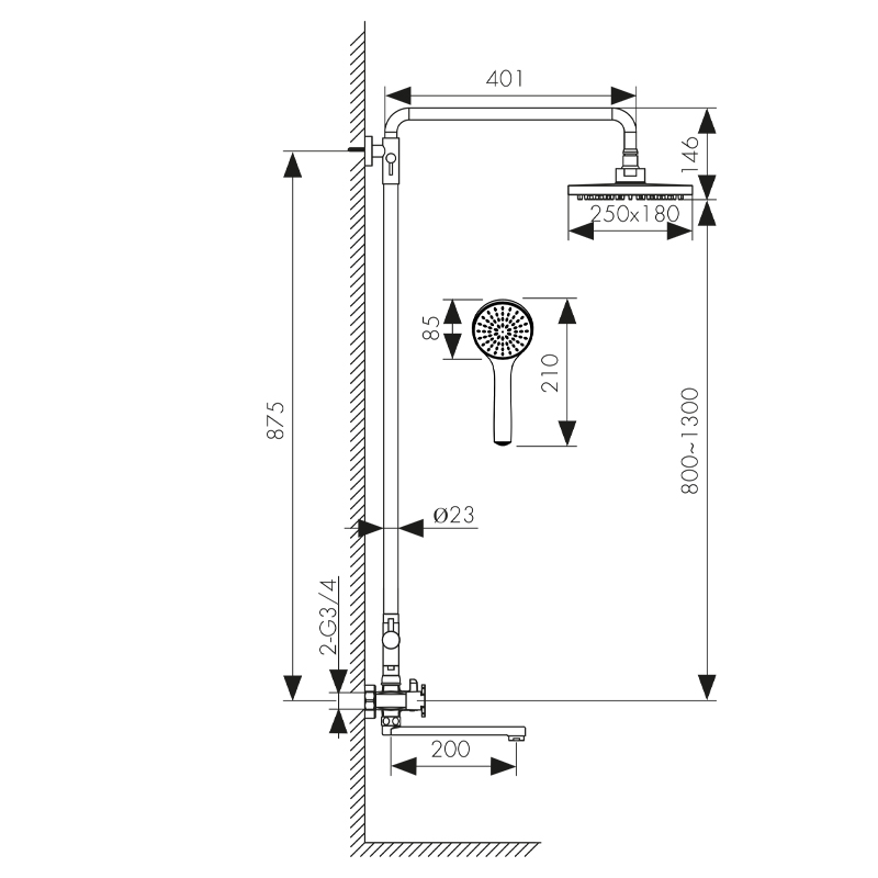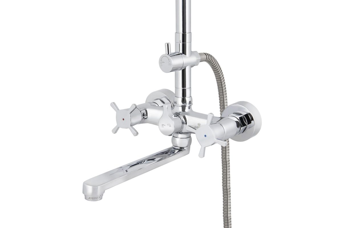 смеситель; релинг; верхний душ; душевая лейка; держатель лейки; шланг; крепления |