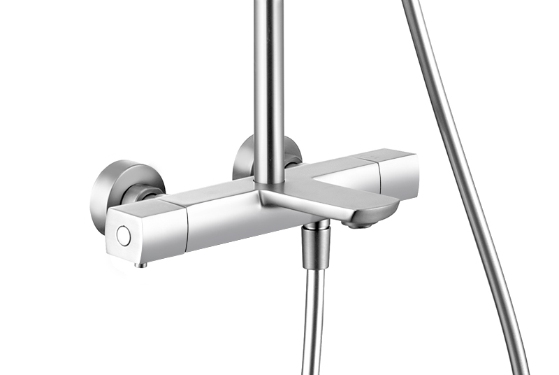 Душевая система KAISER Cube с термостатом и изливом, с регулируемой высотой верхнего душа