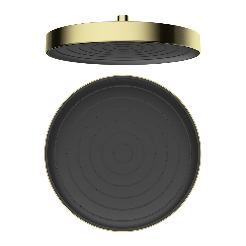 Душевая система KAISER Sano с термостатом скрытого монтажа, поворотн. держатель (4-jet, стац. лейка Ø300*33mm) /Шлифованное золото