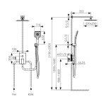 смеситель; релинг; верхний душ; душевая лейка; держатель лейки; шланг; крепления |