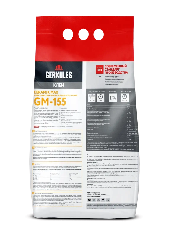 Состав плиточного клея GM-45: цемент, фракционированный кварцевый песок и модифицированные порошковые добавки водорастворимых полимеров ведущих европейских производителей.