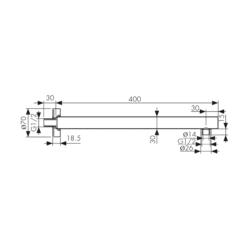Кронштейн KAISER для верхнего душа c отражателем, круглый Ø30х400mm, в коробке /Латунь/Белый матовый