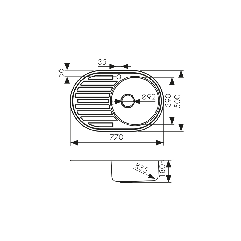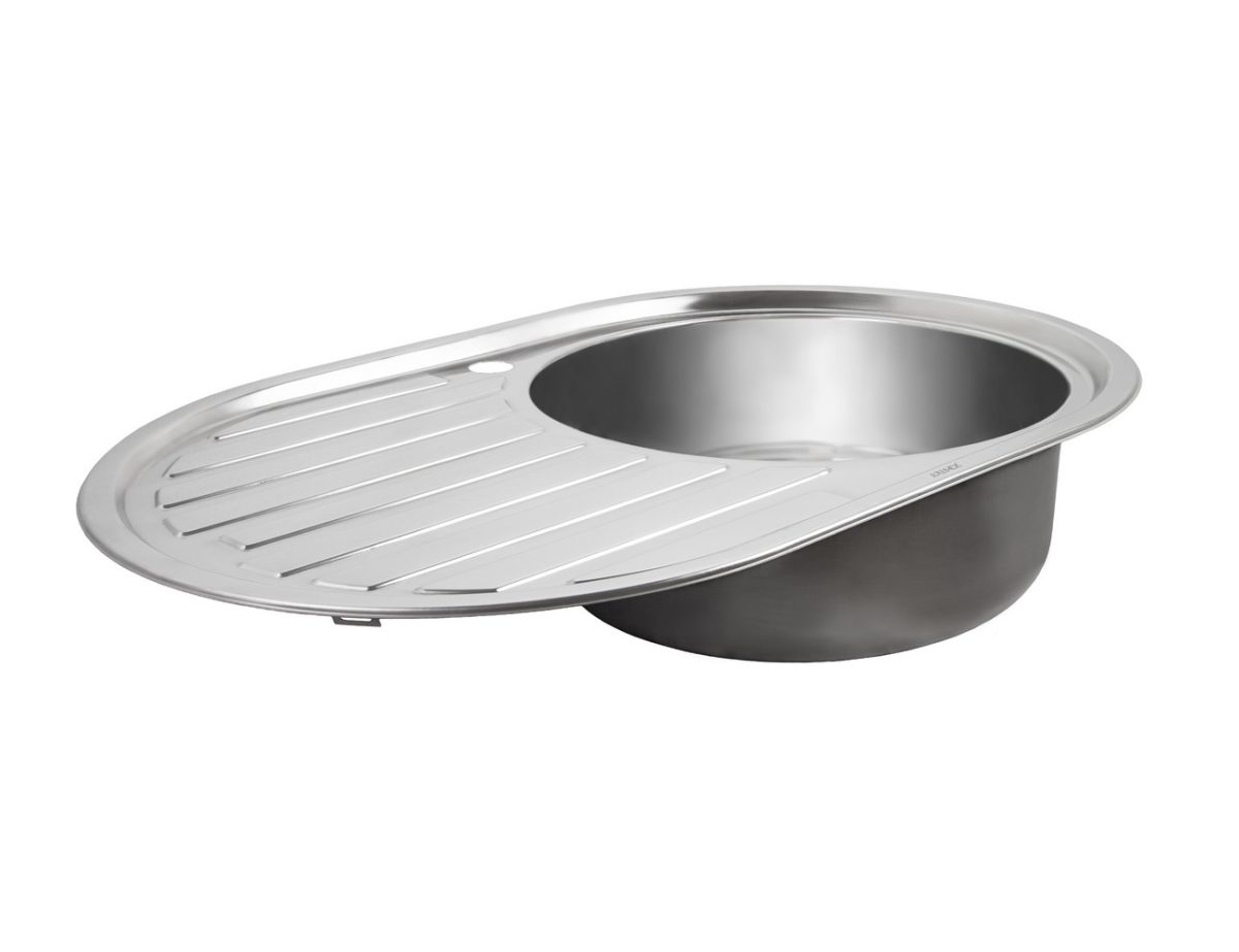 Мойка из нержавейки «KAISER» врезная 770×500*180*0.8mm хром овальная правая/сифон