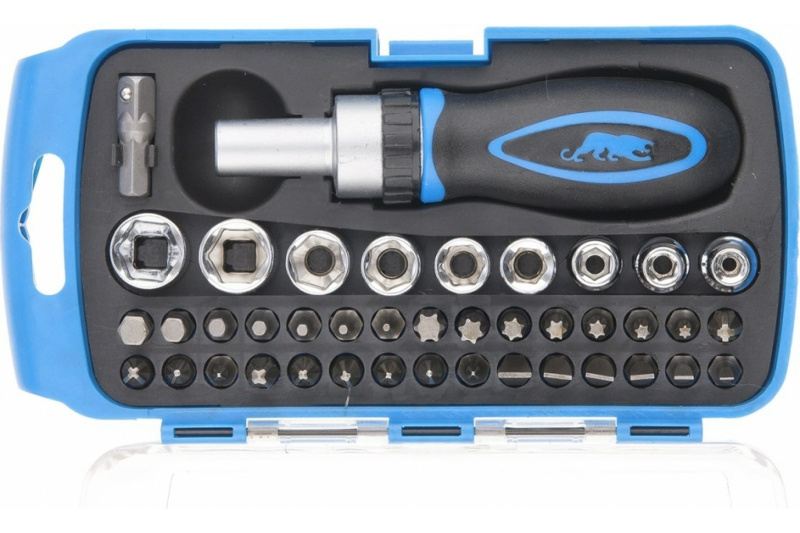 Отвертка реверсивная с набором бит и торцевых головок 41 штука Барс 13358