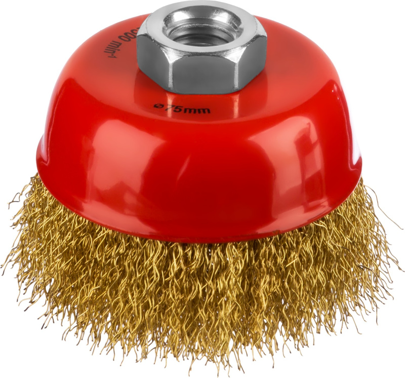 Щетка для УШМ 75 мм М14 чашка витая стальная латун проволока 0,3 мм MIRAX