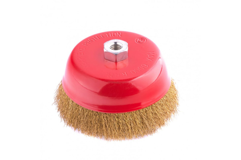 Щётка, применяется для очистки металлических поверхностей от ржавчины и грязи в щадящем режиме. Изготовлена из стальной проволоки с латунным покрытием. Тип посадки – М14.