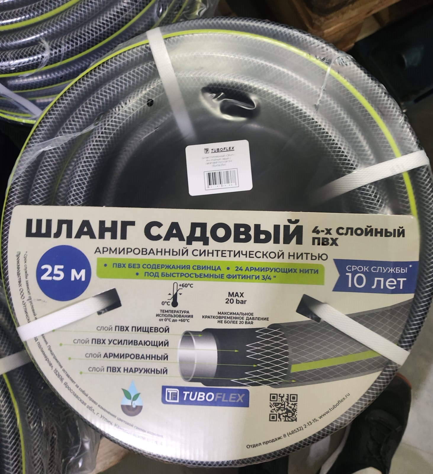 Шланг поливочный 4-х слойный "Элит" 3/4 (серый с салатовой полосой) - 25м