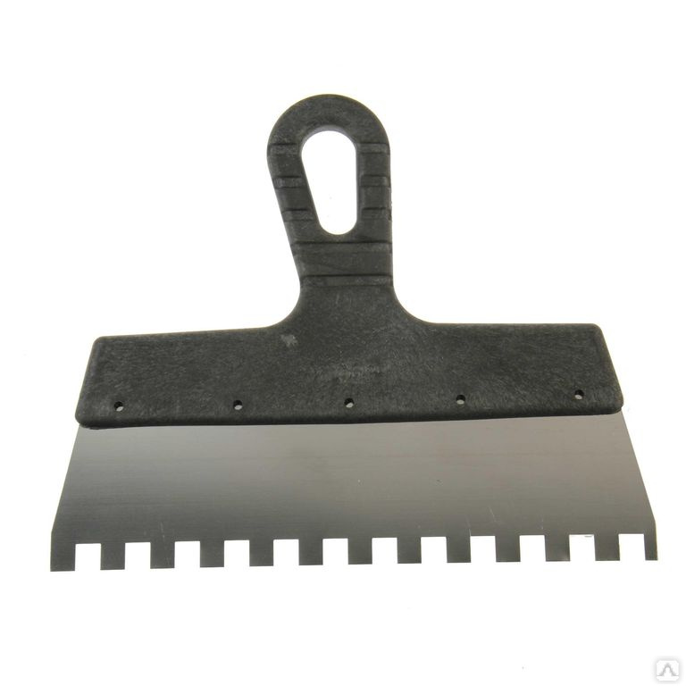 Полотно шпателя изготовлено из нержавеющей стали. Рабочая поверхность инструмента имеет квадратные зубья. Облегченная ручка из ударопрочной пластмассы, которая имеет специальную (изогнутую) форму, что обеспечивает максимально удобную работу. Шпатель предназначен для нанесения, выравнивания и сглаживания шпаклевочного слоя на больших и малых поверхностях.