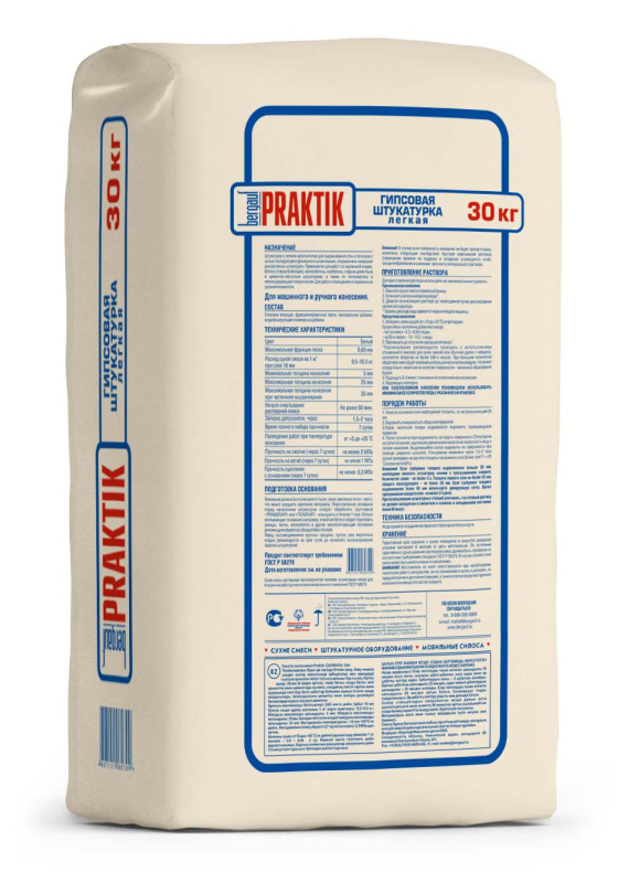 Штукатурка с легким наполнителем для выравнивания стен и потолков с целью последующего финишного шпаклевания, покраски или нанесения декоративных штукатурок. Применяется для работ по кирпичной кладке, бетону (старше 6 месяцев), железобетону, газобетону, старым цементным и цементно-песчаным штукатуркам, а также по гипсокартону и гипсосодержащим поверхностям. Для работ в помещениях с нормальным уровнем влажности.