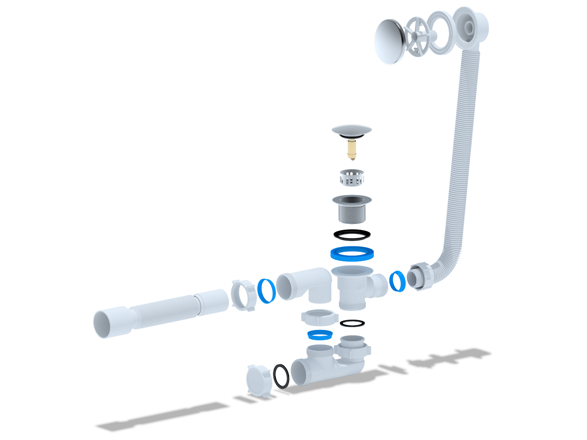 Сифон Ани 1-1/2″ д/ванны автомат 1-1/2″ *40 с с гибкой трубой 375*40/50 (грибок-сетка)