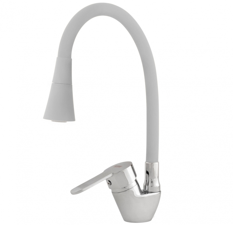 Смеситель для кухни Однорыч. гибкий излив, 2-х режим. карт.40мм СЕРЫЙ (латунь) RUSANT PC-К 336-06