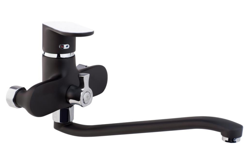 Смеситель для ванны однорычажный, излив 30 см (S), карт. 40 мм, черный хром, «CALORIE Люкс»