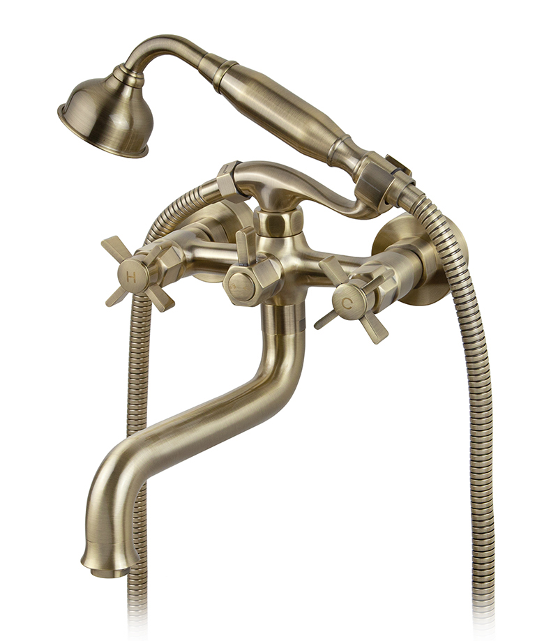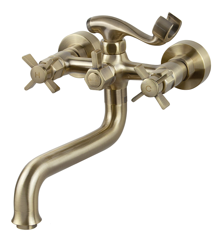 Смеситель KAISER Cross ванна к/н крест керамика (с душем) бронза