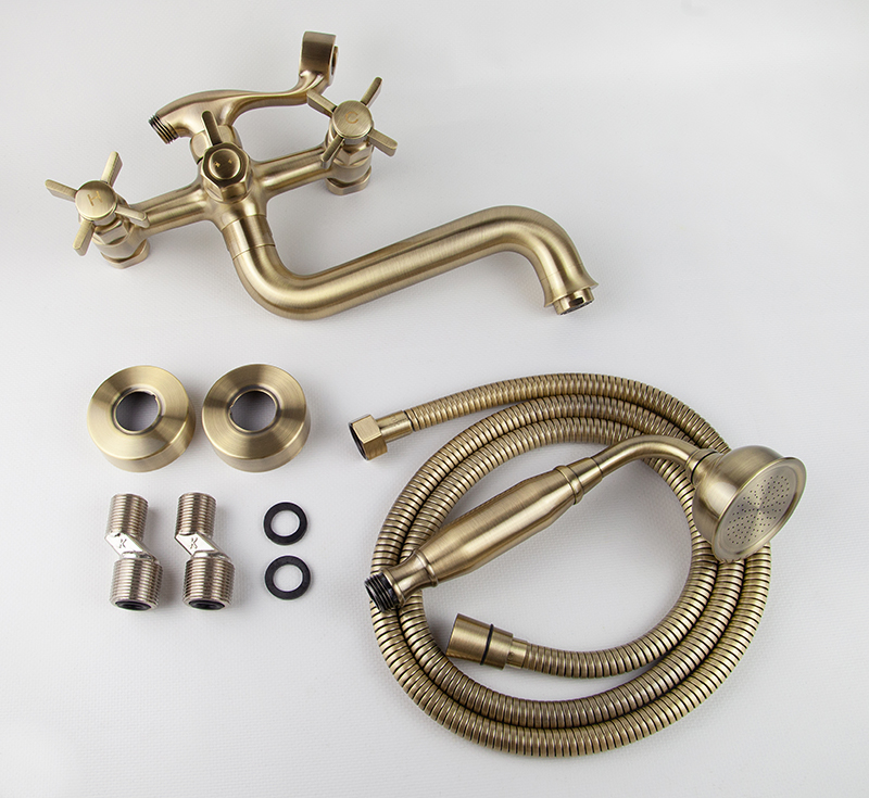 Смеситель для ванны с двумя рукоятками и коротким изливом