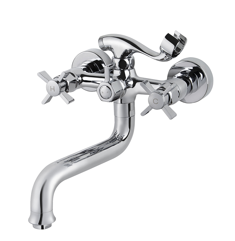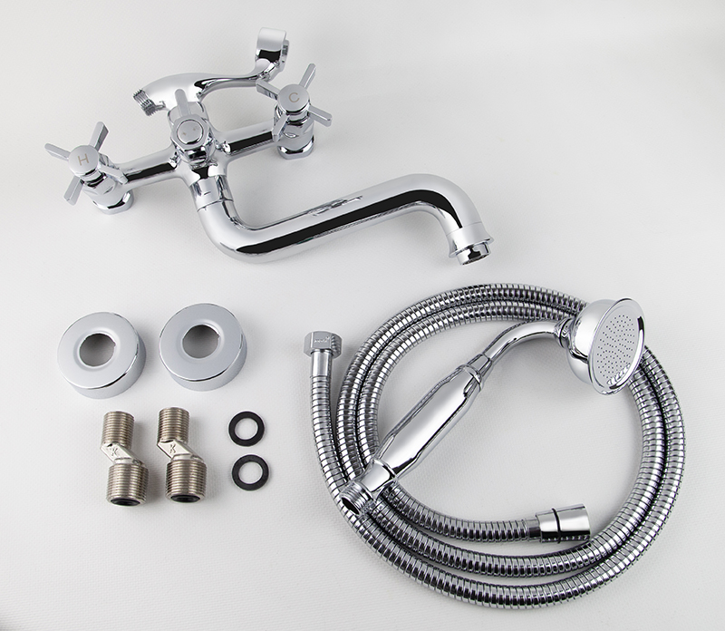 Смеситель для ванны с двумя рукоятками и коротким изливом
