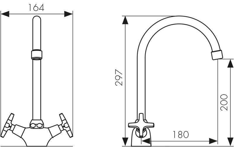 Смеситель KAISER Crystal кухня крест керамика «U»- излив