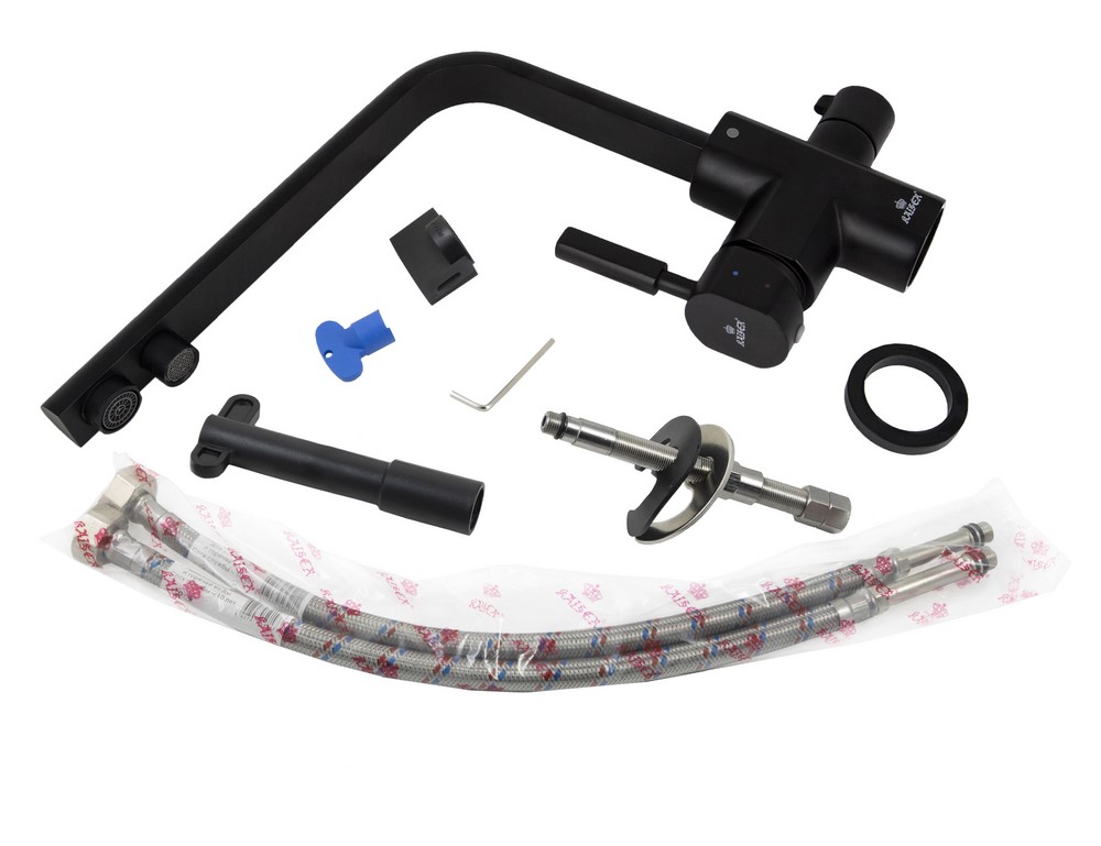 Смеситель Kaiser 40144-9 из коллекции Decor с подключением под фильтр. Для подачи питьевой воды на корпусе смесителя размещен рычаг. Смеситель имеет два аэратора для раздельного выхода проточной и фильтрованной воды, что исключает их смешивания. Преимущество совмещенных смесителей заключается в том, что не нужно делать дополнительных отверстий на мойке и устанавливать отдельный кран для питьевой воды.
