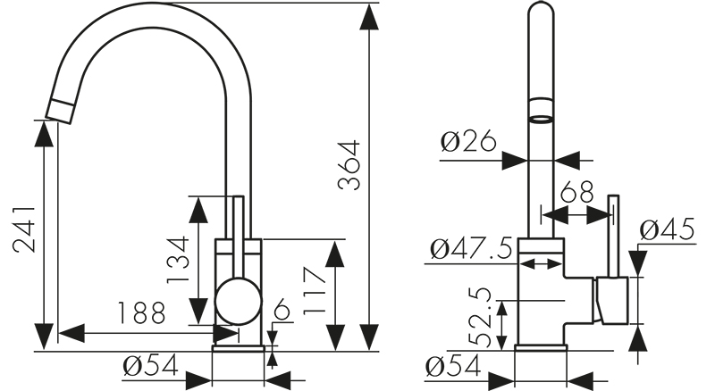 Смеситель KAISER Merkur кухня боковой Ø35 (серебро)