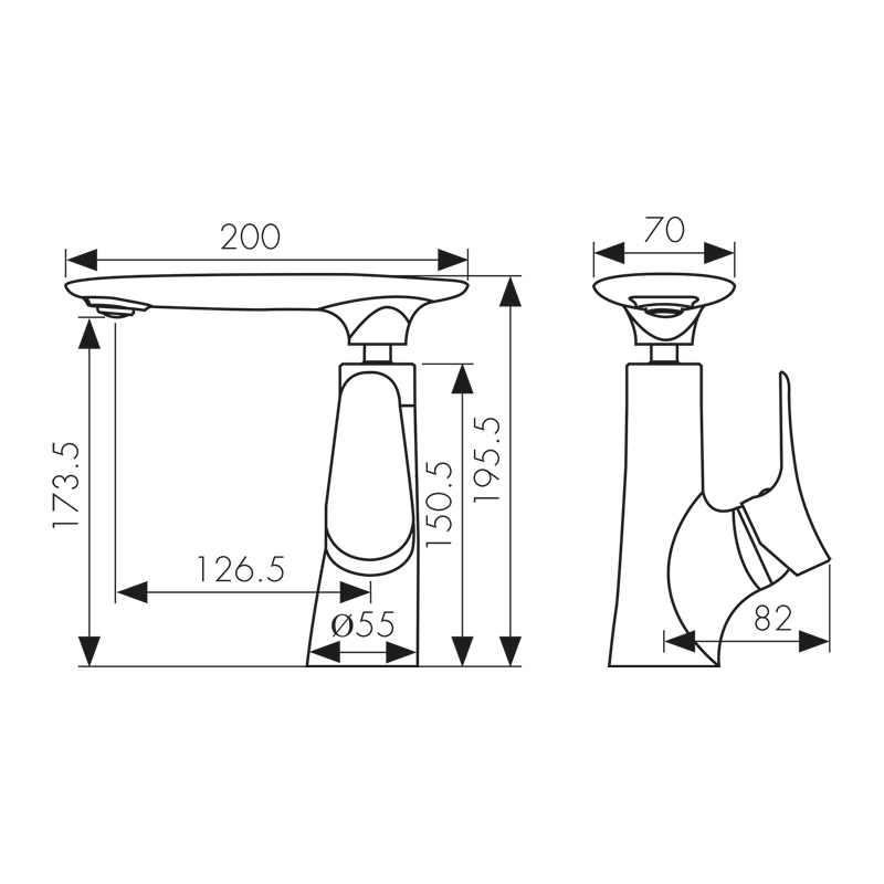 | Высота излива, мм | |