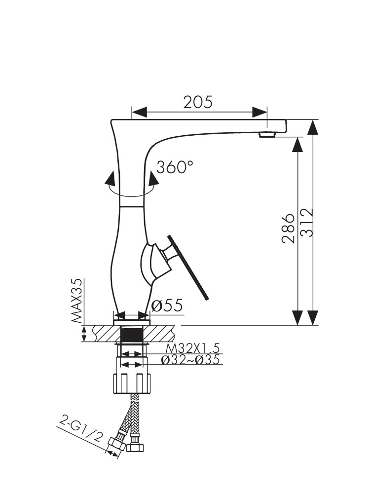 | Высота излива, мм | |