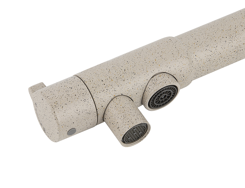 Смеситель Kaiser 13044-4 из коллекции Teka совмещен с краном для питьевой воды. Особенность модели заключается в сдвоенном изливе, внутри которого проходят две трубки, для питьевой и проточной воды. Два аэратора для раздельного выхода проточной и фильтрованной воды, исключают возможность их смешивания. Подача питьевой воды осуществляется переключателем на конце излива. Преимущество совмещенных смесителей заключается в том, что не нужно делать дополнительных отверстий на мойке и устанавливать отдельный кран для питьевой воды.