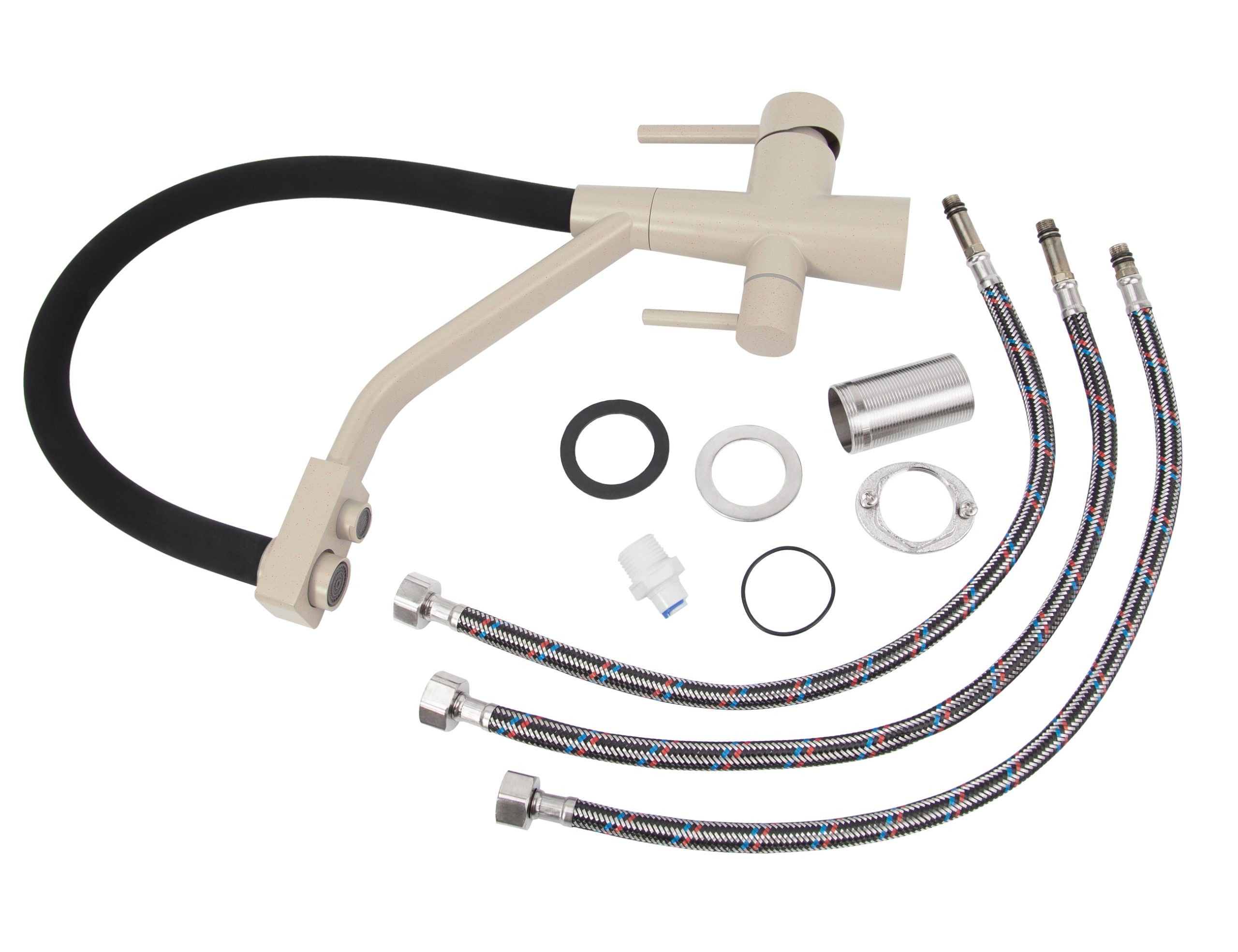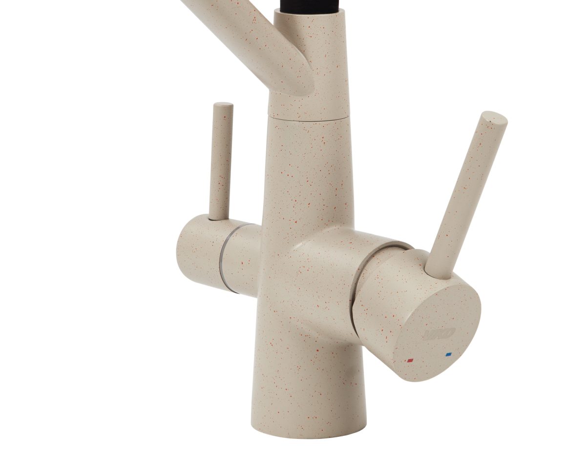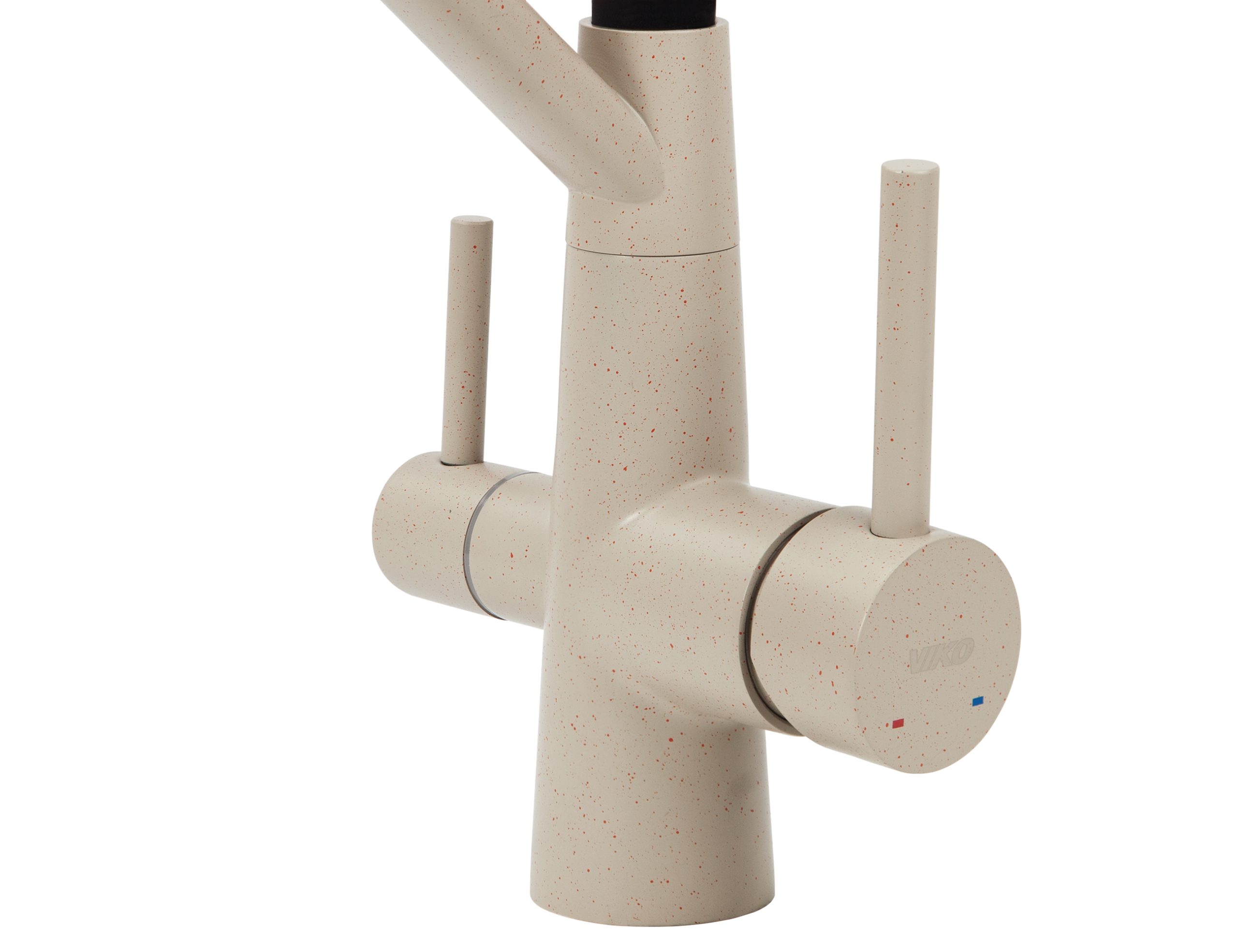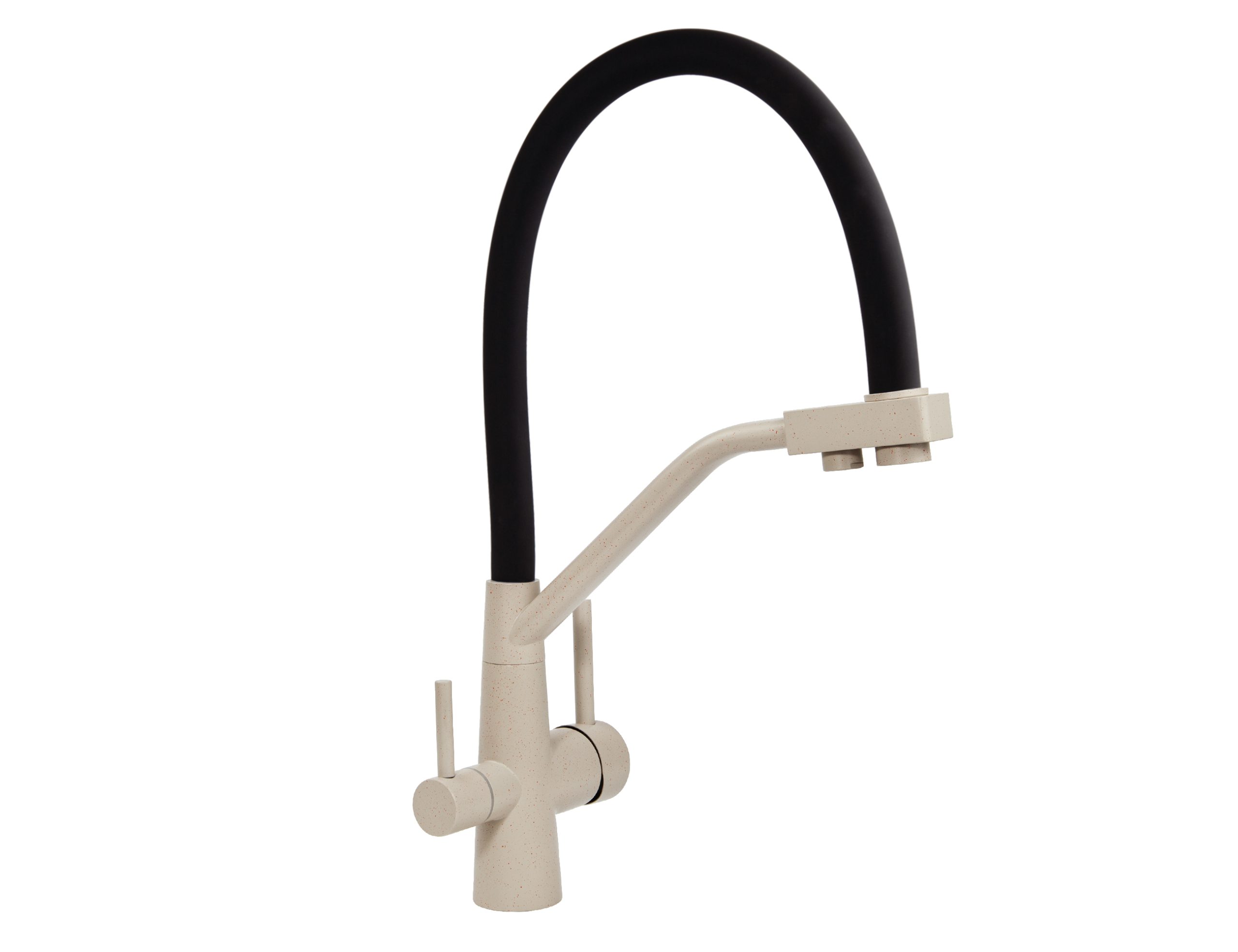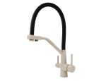 Смеситель VIKO для кухни под фильтр с гибким изливом Ø35, нерж. сталь (корпус/излив: бежевый мрамор/черный)
