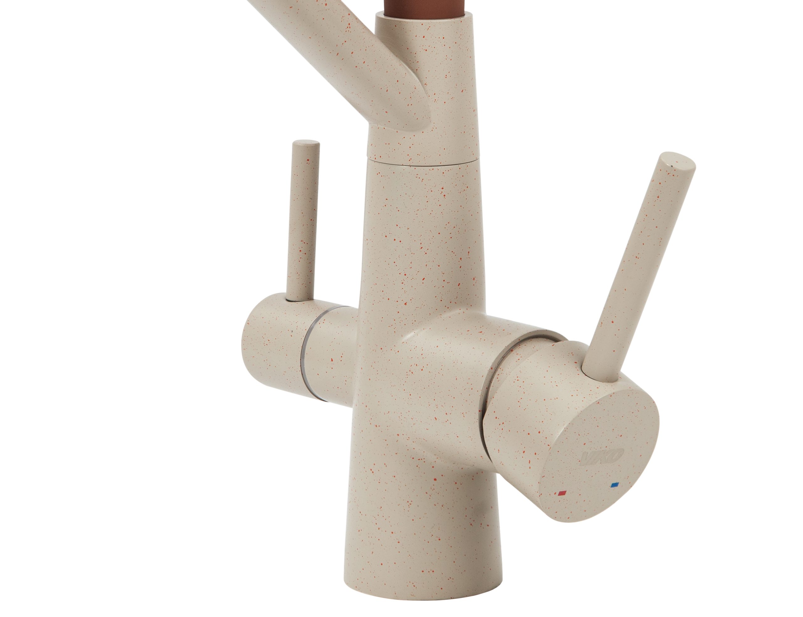 Смеситель VIKO для кухни под фильтр с гибким изливом Ø35, нерж. сталь (корпус/излив: бежевый мрамор/коричневый)