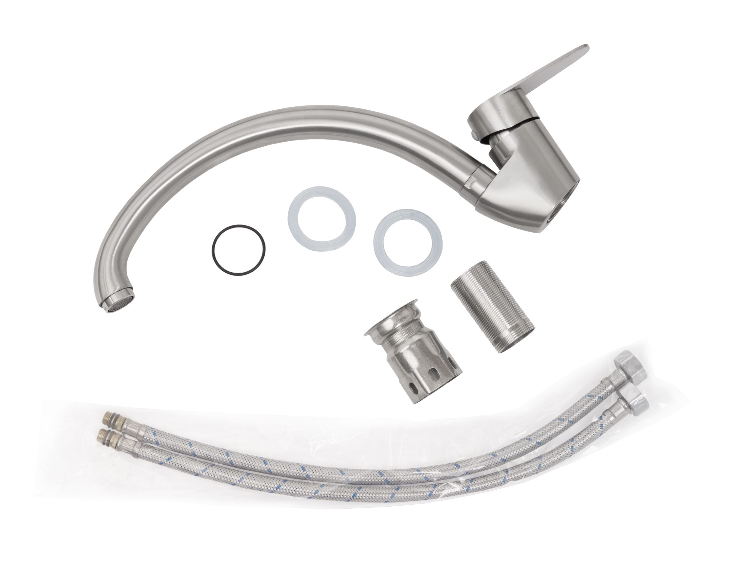 Смеситель VIKO кухня боковой Ø35 с гайкой (нержавейка)/серебро