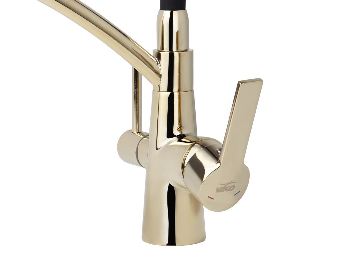 Смеситель VIKO кухня боковой под фильтр Ø35 (латунь) с черным гибким изливом, корпус: золото