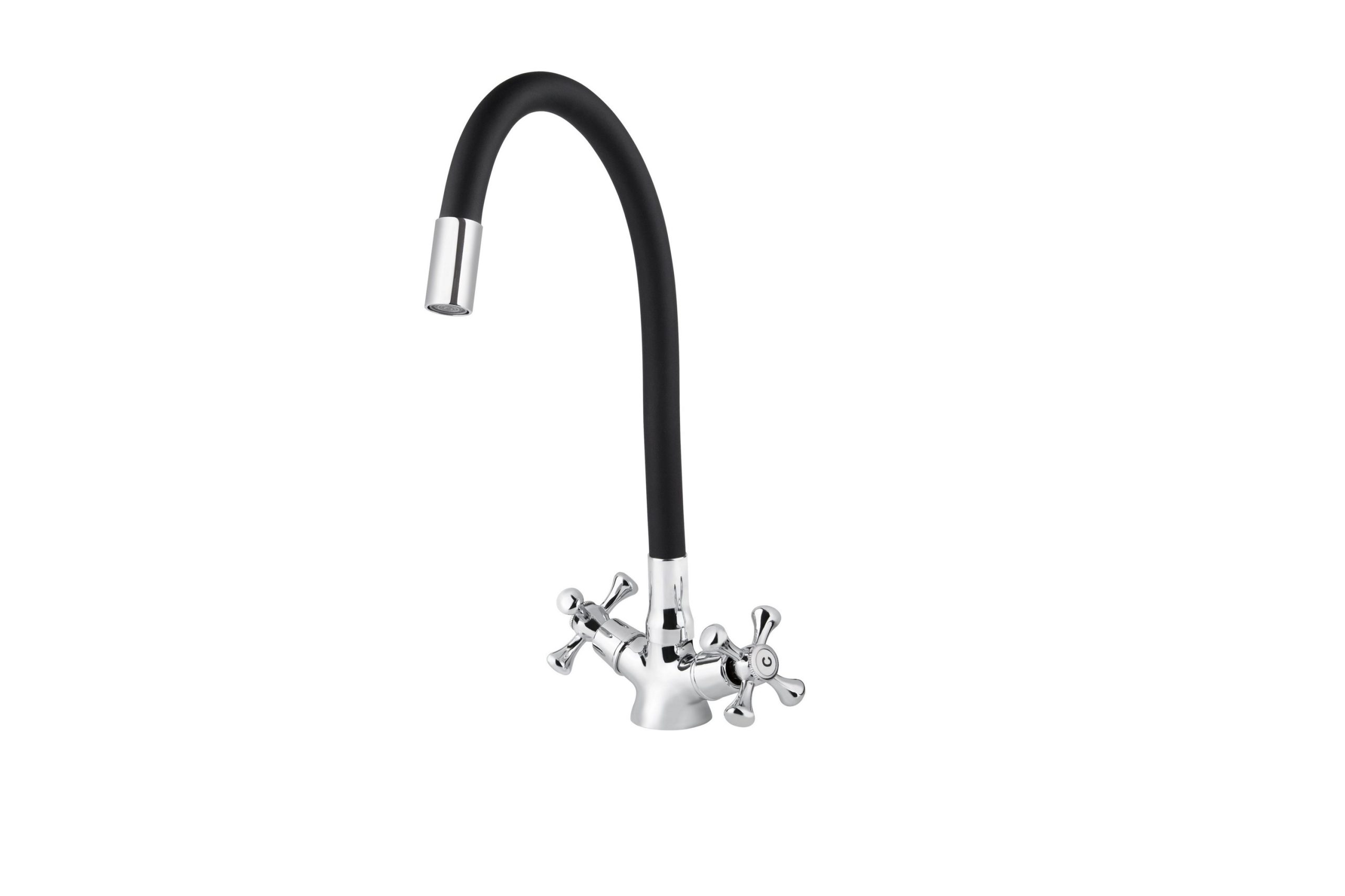 Смеситель VIKO кухня крест керамика с черным гибким изливом с гайкой