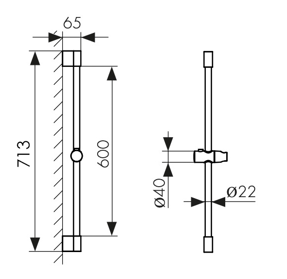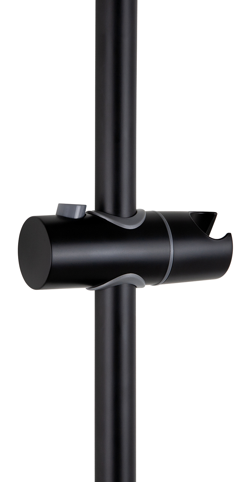 На стойке крепится входящий в комплект держатель для душевой лейки. Держатель для лейки — перемещается и фиксируется по всей высоте и имеет поворотный механизм с изменением угла наклона.