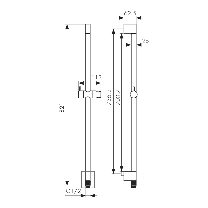 Стойка KAISER с подключением для душегого шланга Ø25*821мм, в коробке /Латунь/Хром